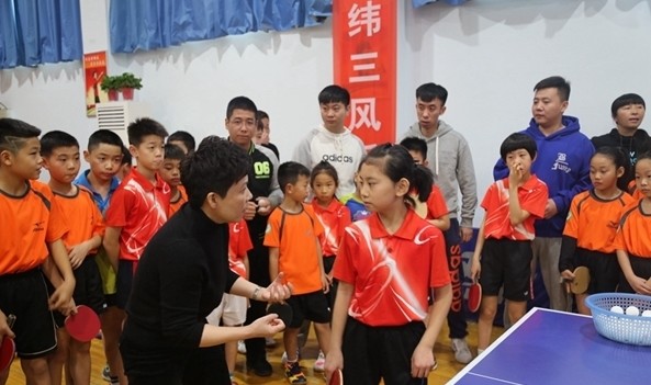 她还走进小学乒乓球训练场,亲自示范,教小队员们打球,鼓励他们坚持训练,追逐自己的体育梦想。