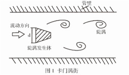 在流体中安放一根(或多跟)非流线型阻流体,流体在阻流体两侧交替地分离释放出两串规则的旋涡,在一定的流量范围内旋涡分离频率正比于管道内的平行流速,在旋涡发生体中装入电容探头或压电探头(检测器)及配置相应电路,即构成了电容检测式涡街流量传感器或压电监测式我姐流量传感器。