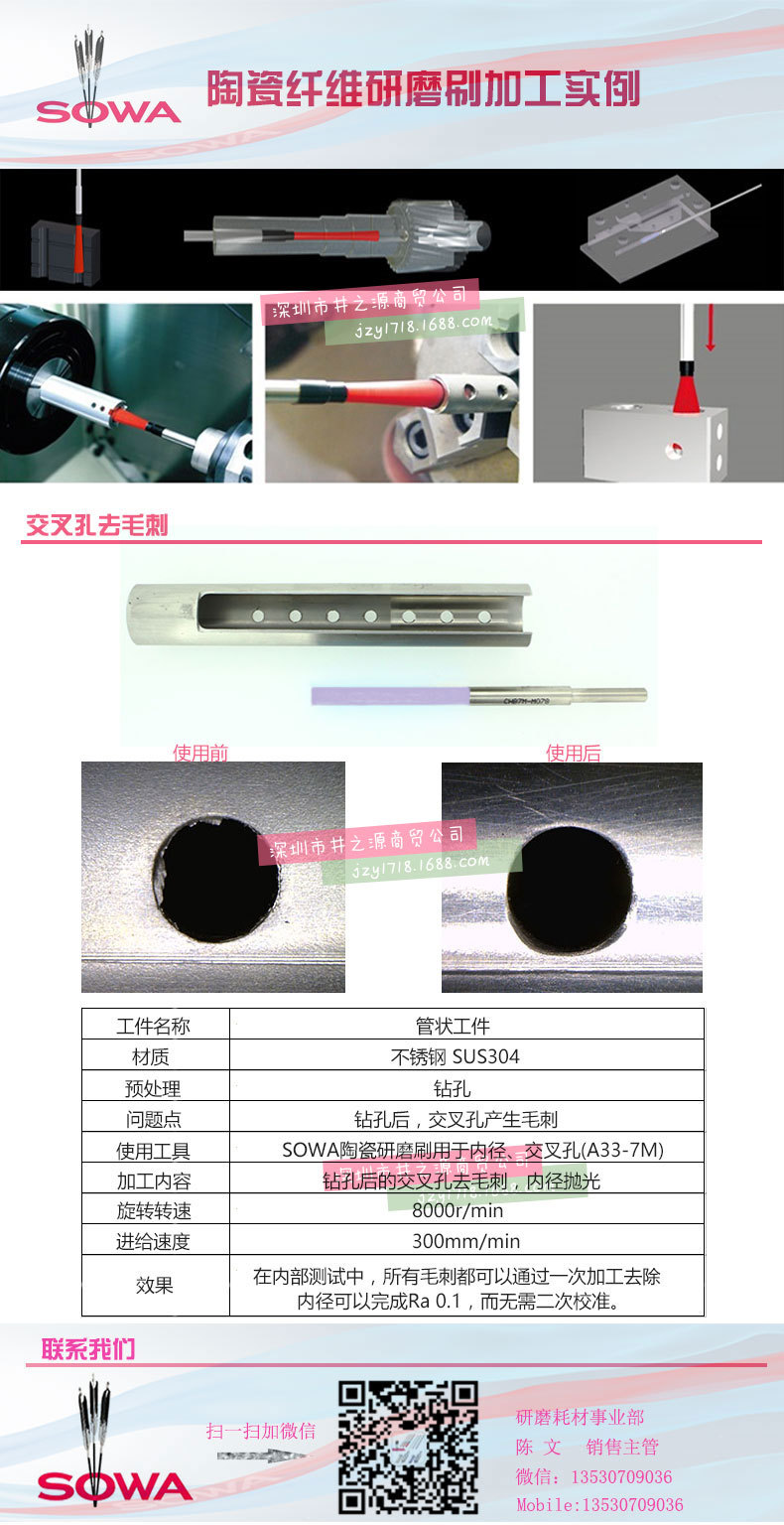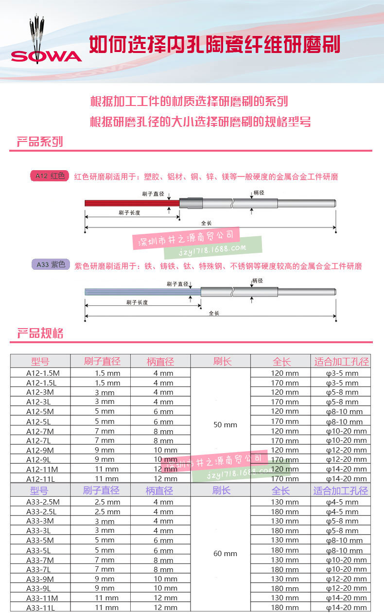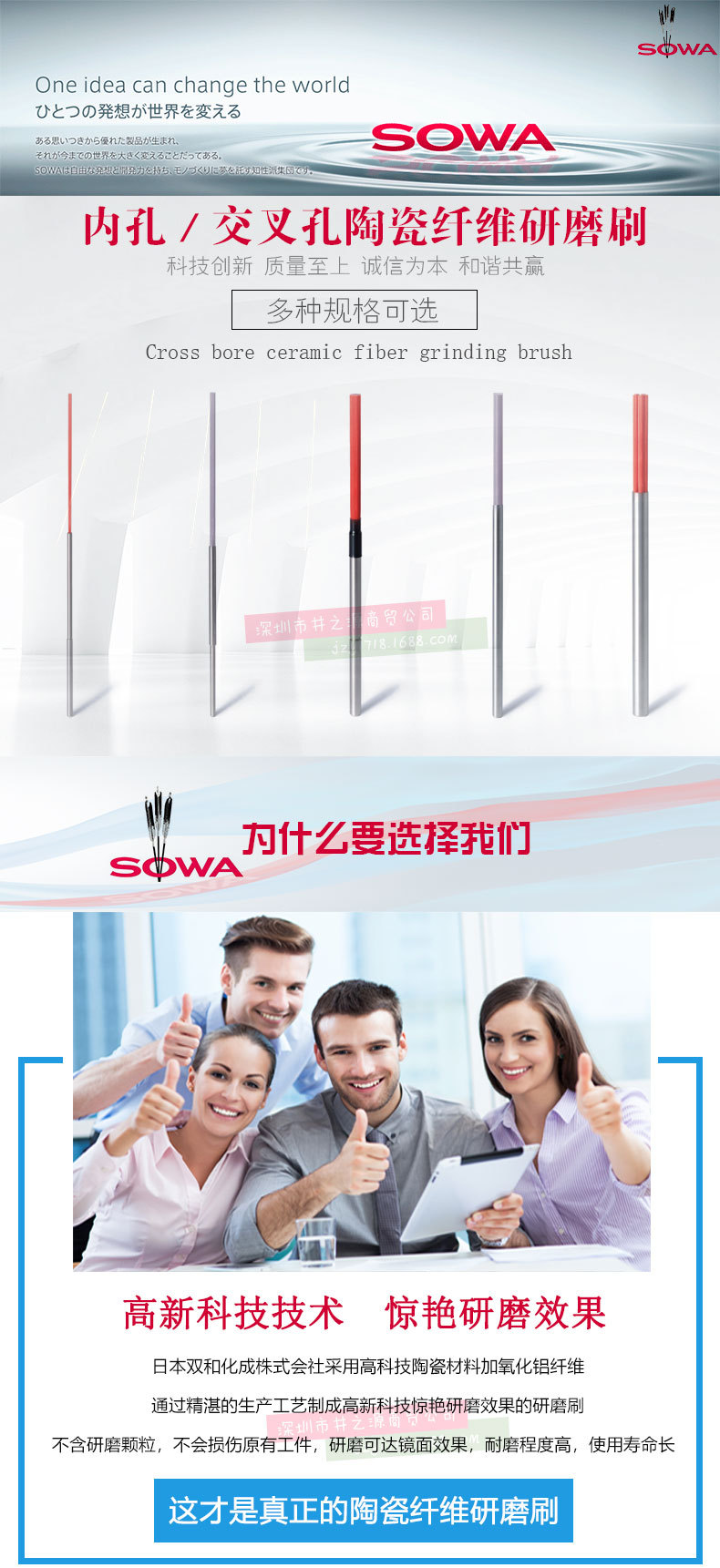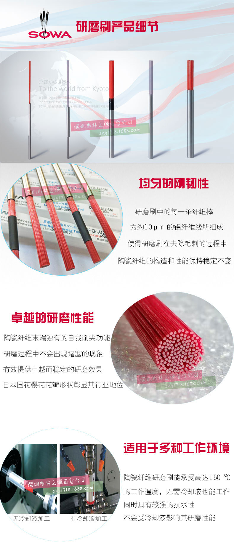 CH-A33-2.5M CH-A33-3M CH-A33-5M CH-A33-7M CH-A33-9M CH-A33-11M日本SOWA陶瓷纤维研磨刷CH-A33钢铁钛硬金属内孔去毛刺抛光毛刷
