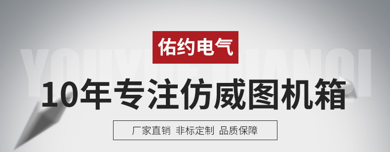 上海佑约电气设备有限公司10年专注生产仿威图控制箱,机柜,机箱,斜面操作台,数控操作箱,仿威图电气控制柜,控制柜,控制箱,接线盒,配电柜,配电箱,电脑柜,网络柜,工业空调,铸铝盒,不锈钢配电柜,户外柜,户外配电箱,温控器,加热器,冷凝水蒸发器,热交换器,仿威图配电柜,PLC柜,光伏汇流柜,非标操作台,不锈钢接线盒,威图机柜系统解决方案等一系列产品;上海佑约电气设备有限公司是多家世界500强长期合作伙伴,一个值得信赖的仿威图机柜厂家。