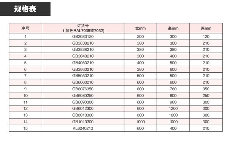 型号 GB挂壁箱