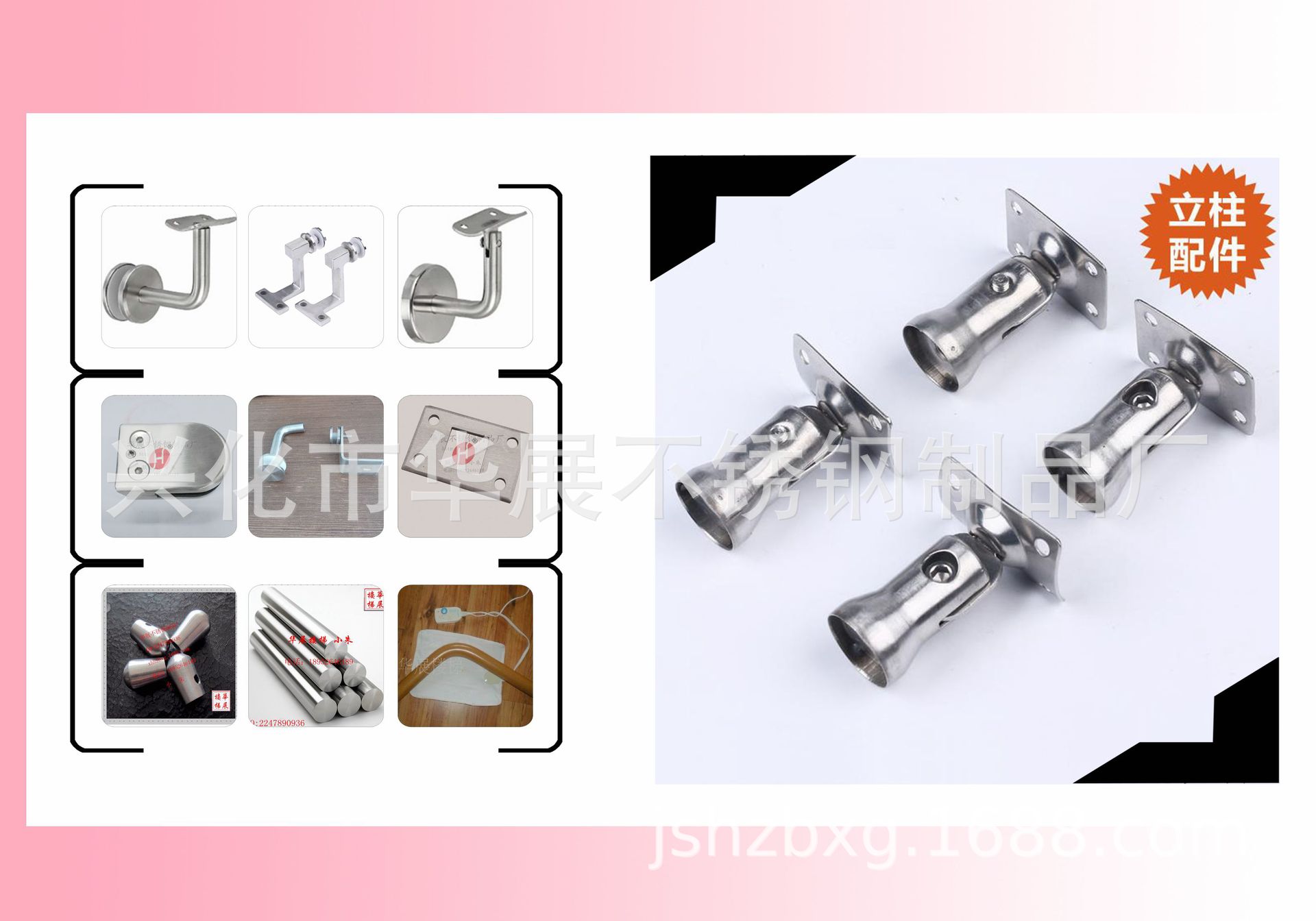 我厂生产不锈钢楼梯立柱,产品美观大方,耐腐蚀,且通过ISO9000 -2000认证。产品适合房地产开发公司、装饰公司、建筑工程。现代化大型宾馆、饭店、体育馆、办公大楼、私人别墅、拦河栏杆等。造型时尚典雅,组装方便美观,具有很强的艺术性、装饰性、实用性。现已是现代家居装饰。希望买家看了如有需要直接跟我联系,谢谢!