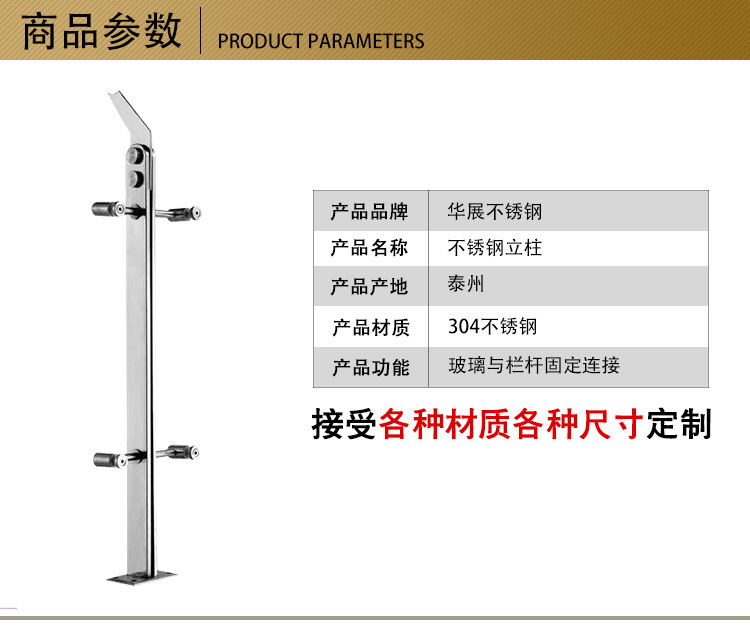 江苏省兴化市华展不锈钢制品厂(华展楼梯)坐落在中国不锈钢之乡——戴南镇工业园区。本厂生产各种不锈钢楼梯扶手、楼梯立柱、玻璃幕墙、窨井盖以及相关不锈钢配件。本厂现有员工50-100人,其中技术人员10人,占地面积5000平方米,拥有固定资产500多万元。我厂与全国多家企业密切协作,产品销售基地稳固。我厂年产不锈钢产品2000多吨,广泛用于装饰装潢,石油、化工、轻纺、渔业、建筑、精密仪器等行业部门,是国内理论,始终定于高质量的产品上,努力追规模较大、品种较全的不锈钢制品生产基地,产品通过IS09001:2000质量体系认证,2005年以来连年获江苏省“重合同守信用单位”称号,被认定为江苏省“AAA”级企业。 我们竭诚欢迎国内外的朋友莅临指导、洽谈!