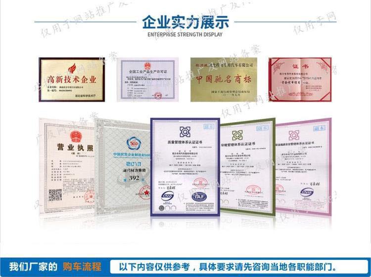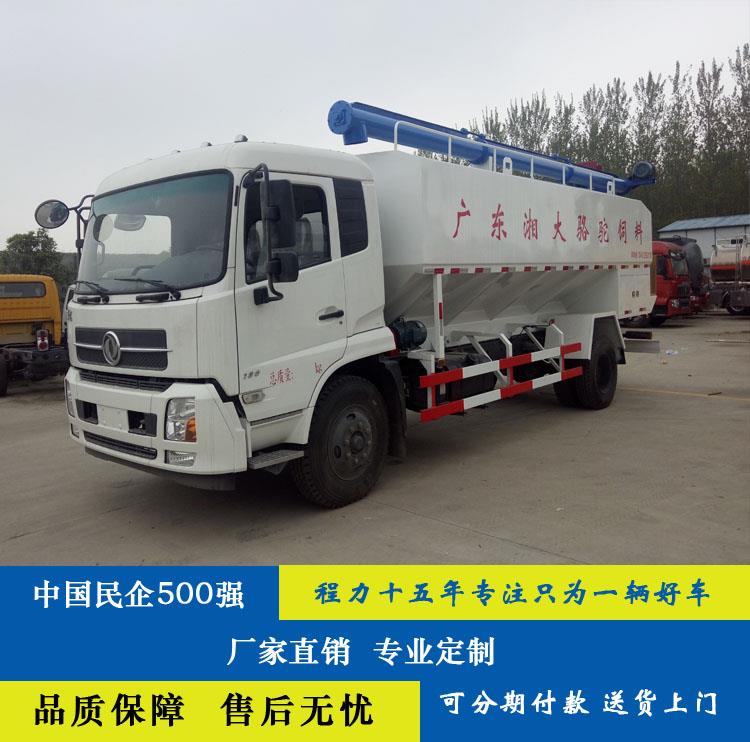 用东风天锦底盘,轴距5000,康明斯6缸180马力电喷发动机,国四排放标准,6档变速箱,9吨后桥,90.00-20轮胎带备胎一个,气刹,断气刹,方向助力,液压翻转,带卧铺,驾驶室原装空调。罐体有效容积20立方(11吨左右),分三个仓位,电动绞龙卸料,可装液压绞龙,可装发电机组,可装无线装置。卸料速度为每分钟550公斤,卸料高度为8.6米,卸料绞龙仰角为60°,提料绞龙回转角度为360°,电器控制部分采用德力西电器,智能控制可防止误操作,即使出现误操作,也不会损坏上装部分。
