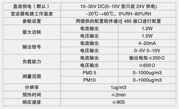 RS-PM-N01-2 是一款工业级通用颗粒物浓度变送器,采用激光散射测量原理,通过独有的数据双频采集技术进行筛分,得出单位体积内等效粒径的颗粒物粒子个数,并以科学独特的算法计算出单位体积内等效粒径的颗粒物质量浓度,并以 485 接口通过 ModBus-RTU协议进行数据输出。可用于室外气象站、扬尘监测、图书馆、档案馆、工业厂房等需要 PM2.5或 PM10 浓度监测的场所。