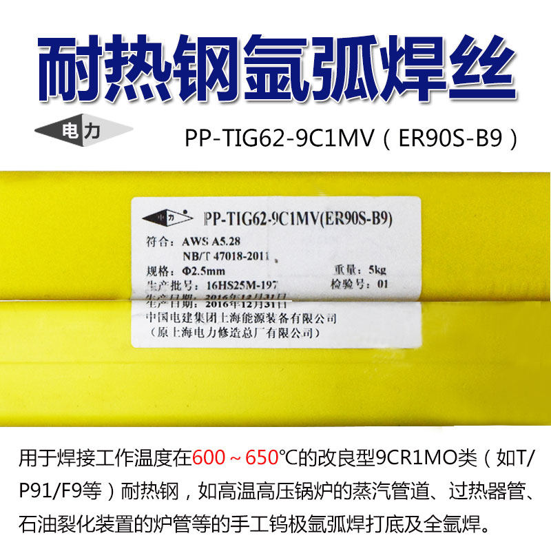 上海电力PP-TIG62-9C1MV耐热钢焊丝ER90S-B9耐热钢氩弧焊丝2.5mm