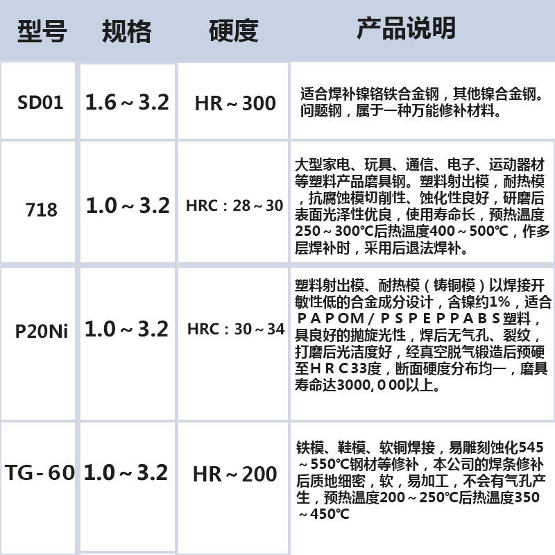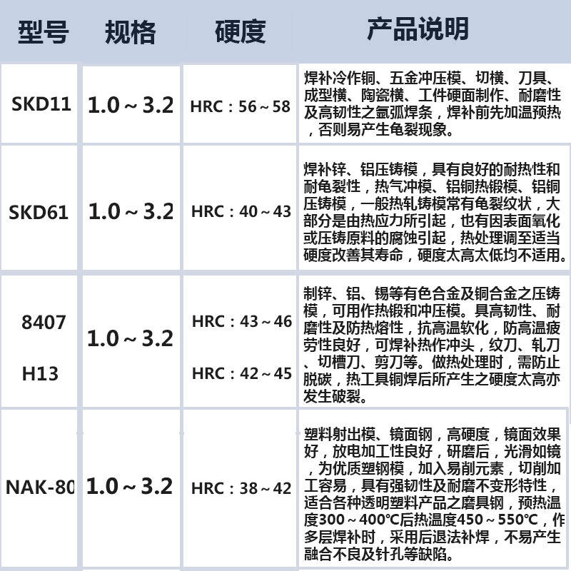模具修补焊丝SKD11 SKD61 NAK-80 8407 SD01 P20Ni 718焊丝1.0mm