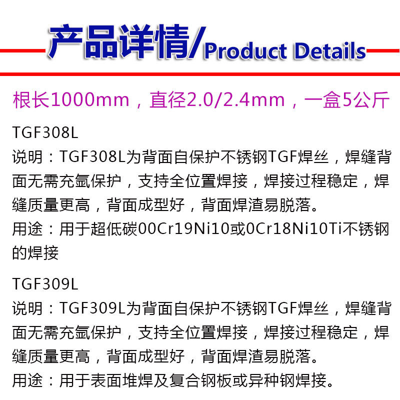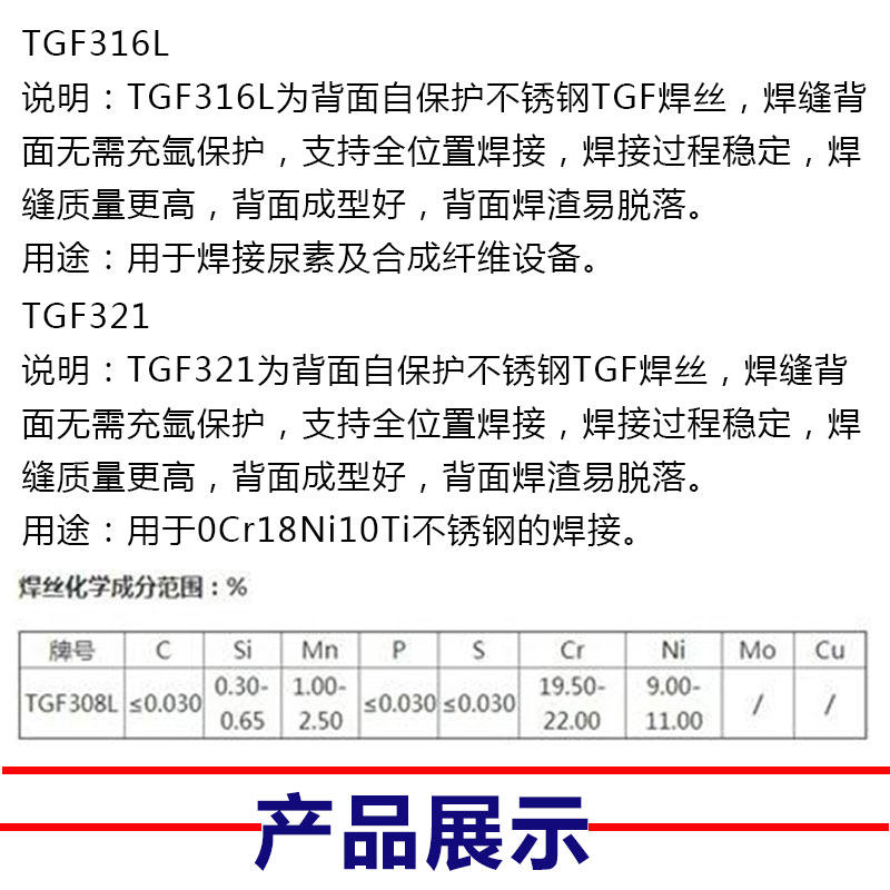 不锈钢免充氩焊丝TGF308L 309L 316L 321L 347L背面药皮焊条焊丝