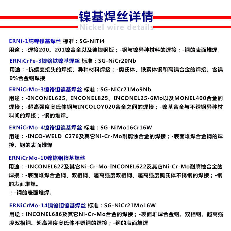 伊萨镍基焊丝ERNi-1纯镍焊丝ERNiCrMo-3/4/10镍基合金焊丝2.0/2.4