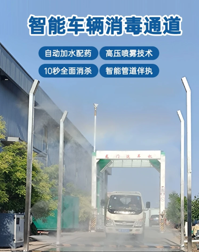车辆喷淋消毒体系效劳为先,圆柱选用纯不锈钢制造,漂亮大方,多重过滤防护,防备喷头阻塞。喷塑机箱提高了设备在各种环境下的适应性,增加了漂亮度,整机防震,轿车消毒设备降噪音处理了动力体系功能的安稳。