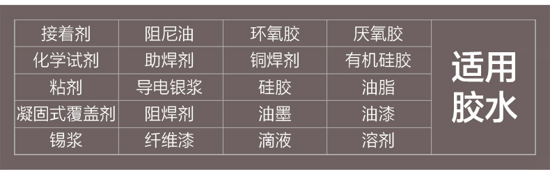 所有流体都可以通过空气压力或机械力进行施胶,精密的流体点胶可减少不良品和提高生产效率,自动控制点胶确保生产过程流畅,避免浪费和失误,质量更可靠。