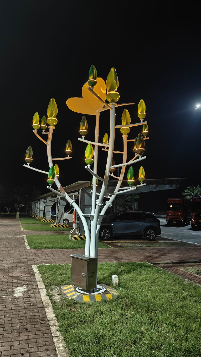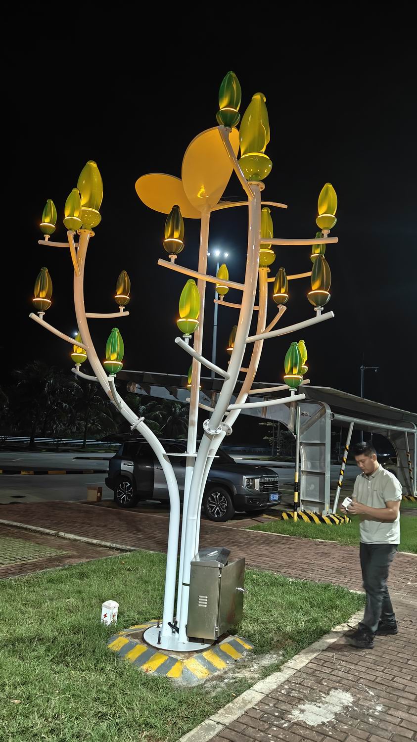 戈雅艺术风力发电树,又叫风树、发电树。简而言之就是一棵可以依靠风力发电的景观树。是一种比传统电风车更为先进实用的新型风力发电技术,该技术采用树叶形植物仿生风动装置,即使在微风下也能发电。
