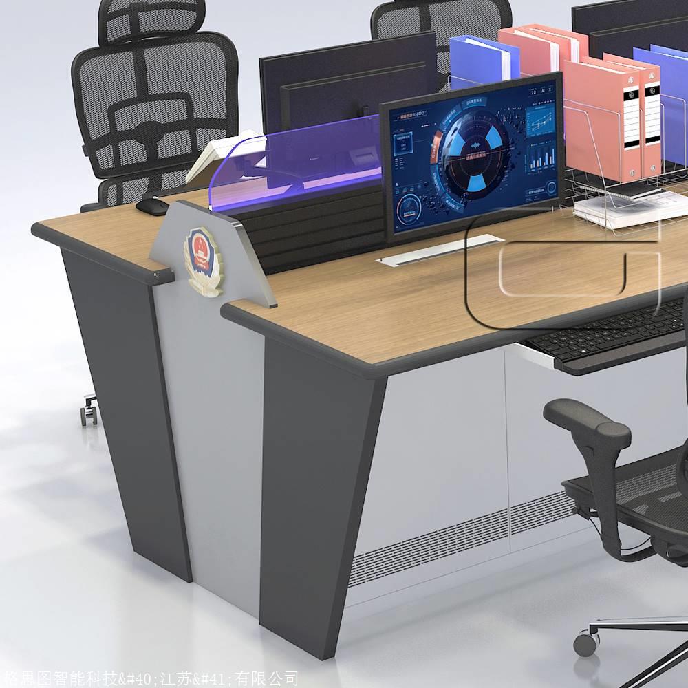 操作台由台面部分,柜体部分,键盘抽屉,柜内可调节托板,开孔面板,显示器安装背板,可配脚踏板等等组合