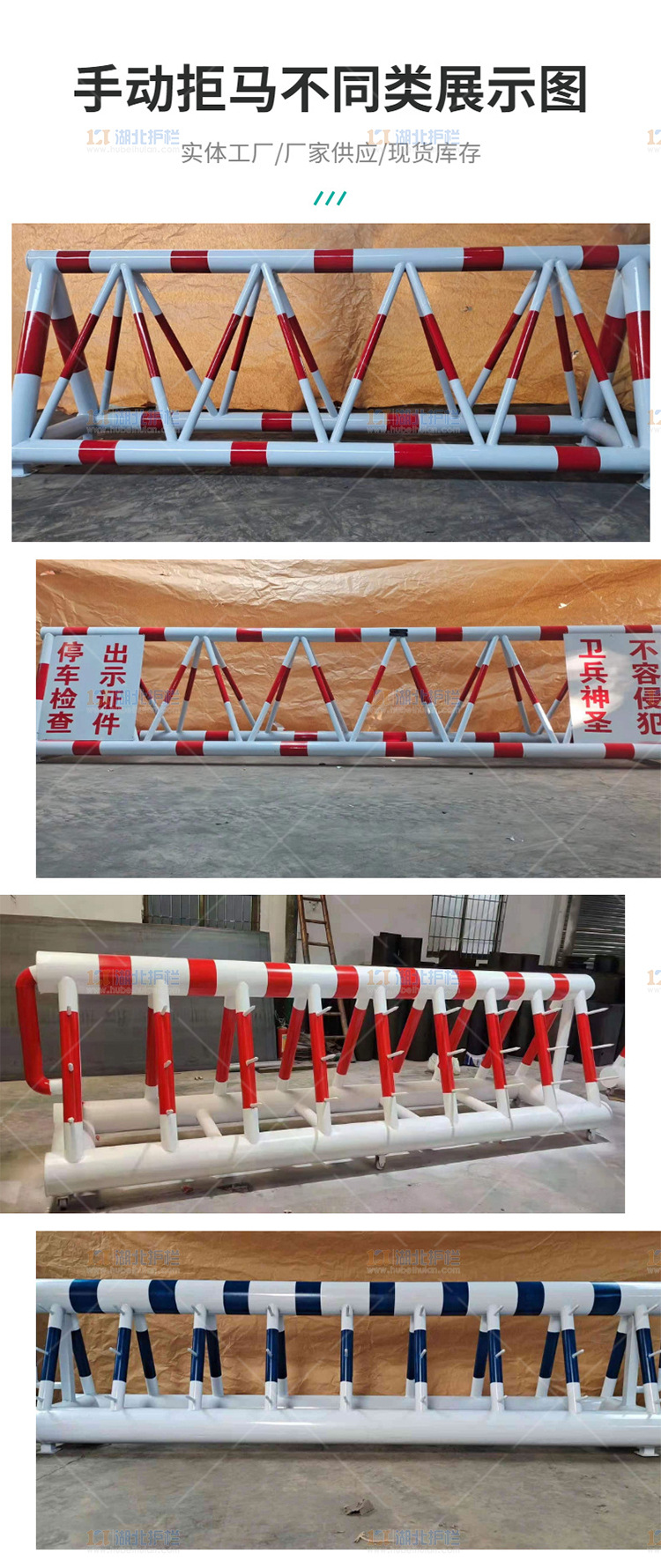 目前市面上移动拒马路障的种类有很多,如移动拒马路障、挡车桩、刺马防撞栏杆、推拉防撞护栏、不锈钢铁马、红白铁马、带刺钉拒马、移动拒马、弹力警示柱等产品,天门多祥移动拒马路障咨询及订购:曾工。