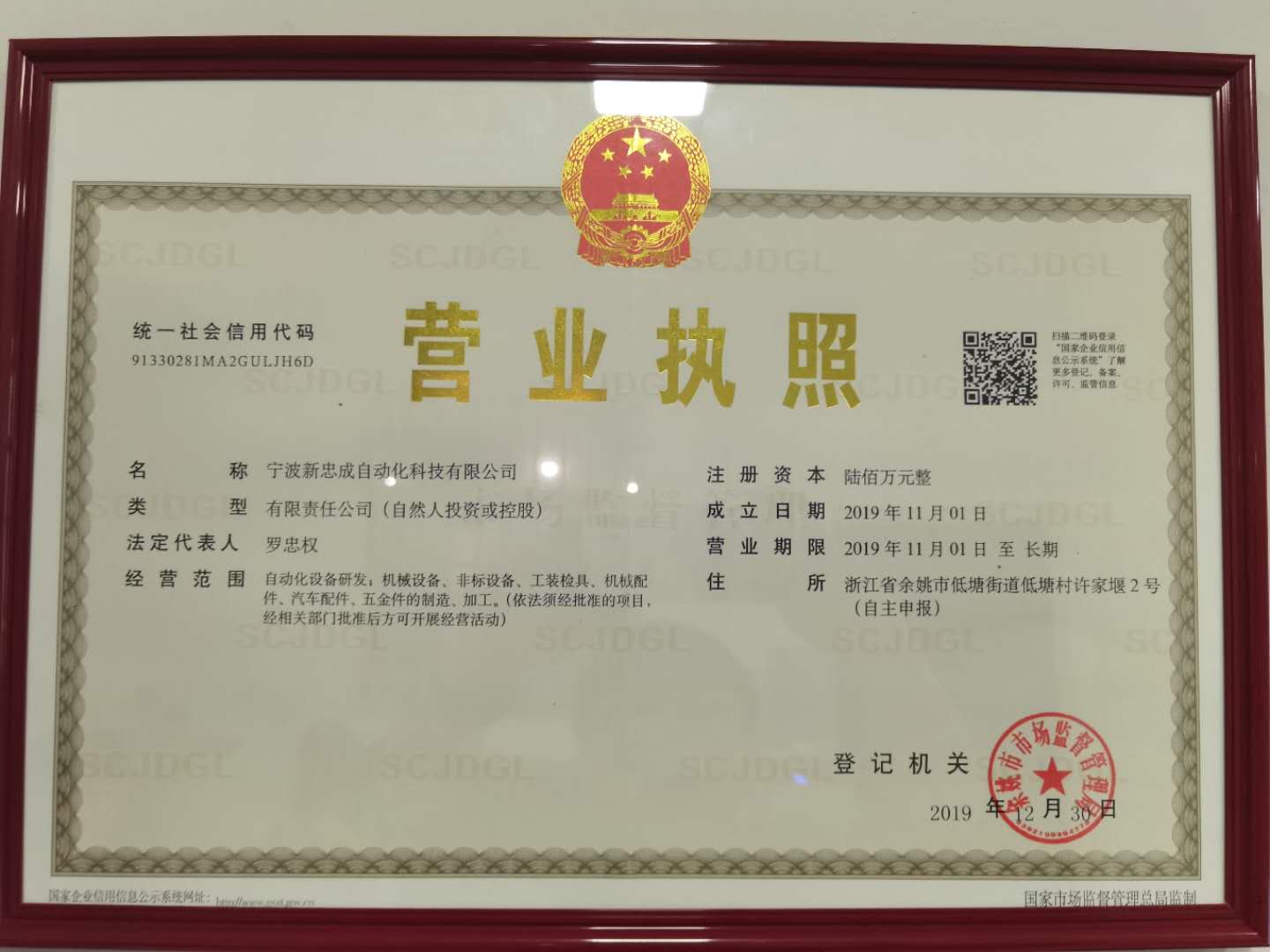 地址: 中国 浙江 宁波市浙江省余姚市低塘村许家堰2号