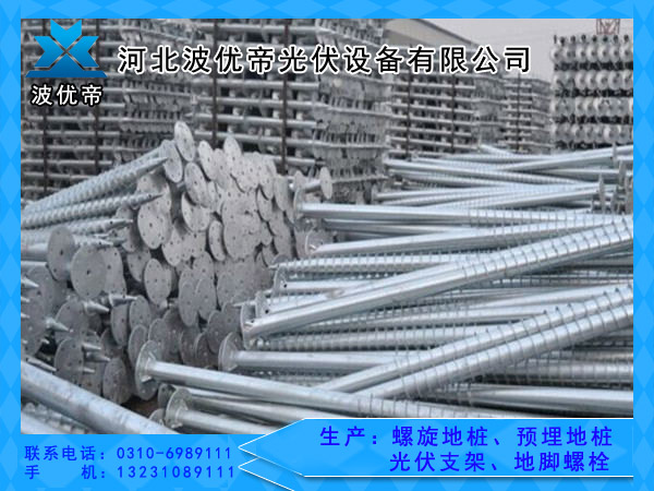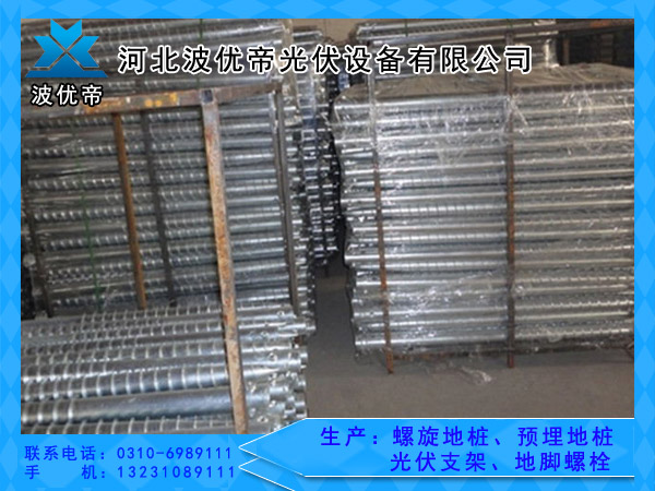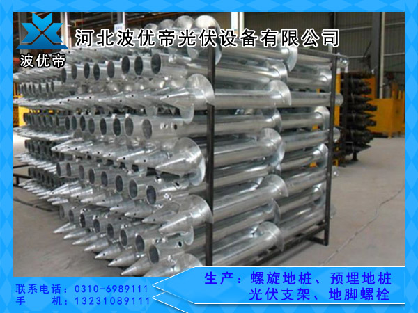 螺旋地桩是一种新型的太阳能光伏配套产品,适用于各大太阳能光伏、风能及建筑类行业、如太阳能电站桩基、广告牌桩基、标志旗桩基、木质房屋桩基等,适用于各种地质,如粘土、戈壁滩、砾石等,其高负荷性能、稳固性、抗沉降性及抗拉拔性,深受业内同行的青睐。