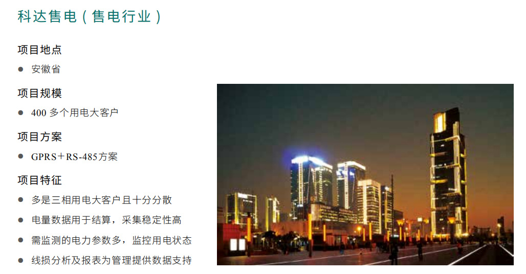 服务的客户覆盖电力公司、售电公司、物业公司、公寓、写字楼、园区、工厂企业、学校等常见场景,工程项目和售后服务网络遍布全国所有省份。