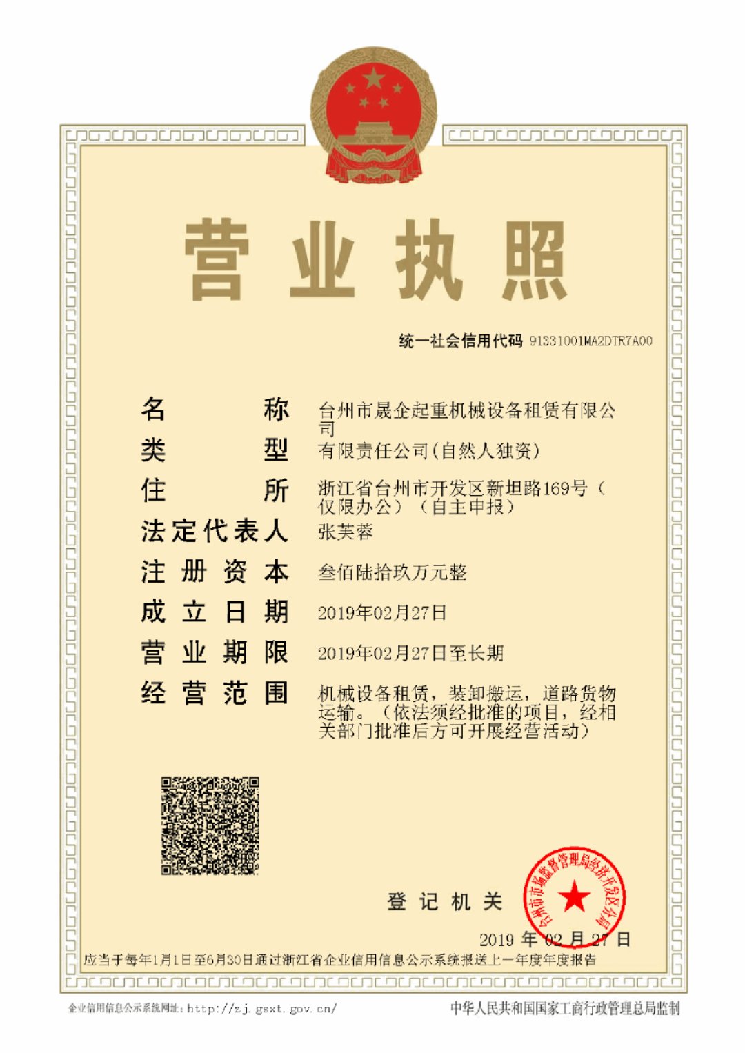 地址: 中国 浙江 台州市浙江省台州市开发区新坦路169号(仅限办公)(自主申报)