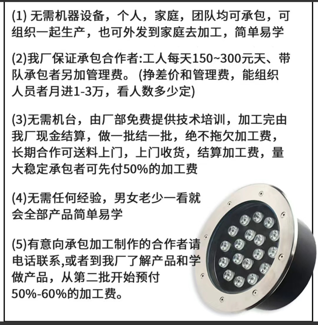 本公司直接外发手工,不挣差价,兼职或组织人员都可以。常年有大量有电子产品,LED灯,文具类,电子元件。