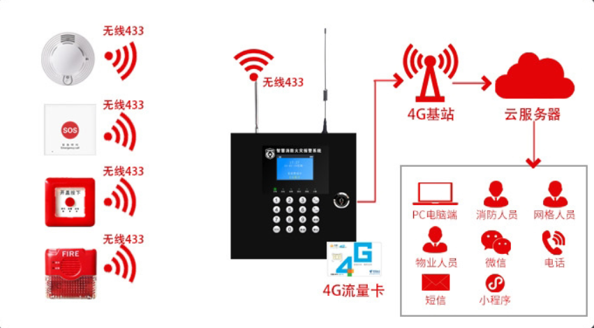 烟感和主机免接线,无线传输大面积覆盖,信号穿透能力强,无线火灾警报主机采用物联技术433无线传输,解决安装麻烦,布线成本高,维护成本高问题支持255路无线防区,8路有线防区。可根据自己安装的位置自由编辑防区名称/防区类型。发生警情的最快时间知道探测器的准确位置。