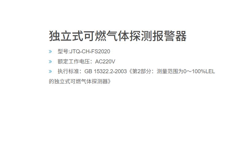 执行标准:GB 15322.2-2003《第2部分:测量范围为0~100%LEL的独立式可燃气体探测器》