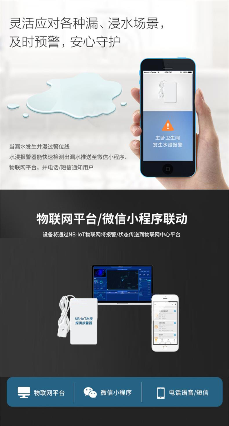 4G无线漏水传感器,采用电极式水浸传感器,标配双探头8m线缆,集电池供电、低功耗、NB/4G通信于一体的物联网应用智能仪表。广泛应用于数据中心、通信机房、发电站、仓库、档案馆等一切需要防水的场所。