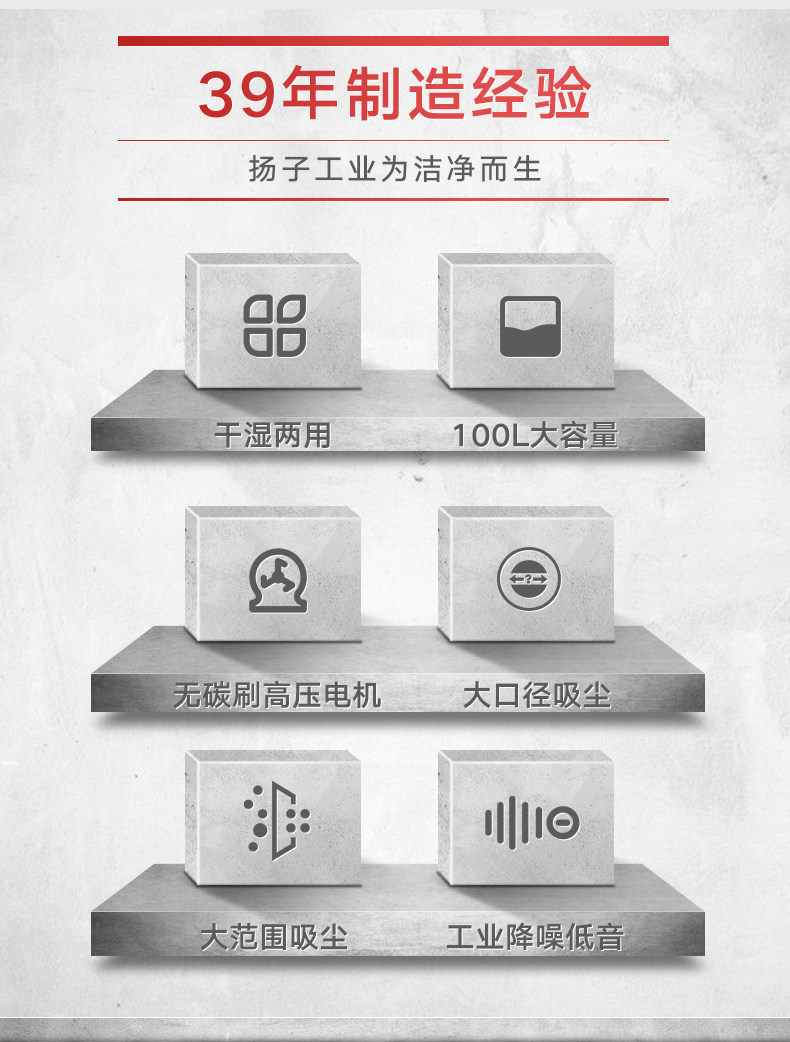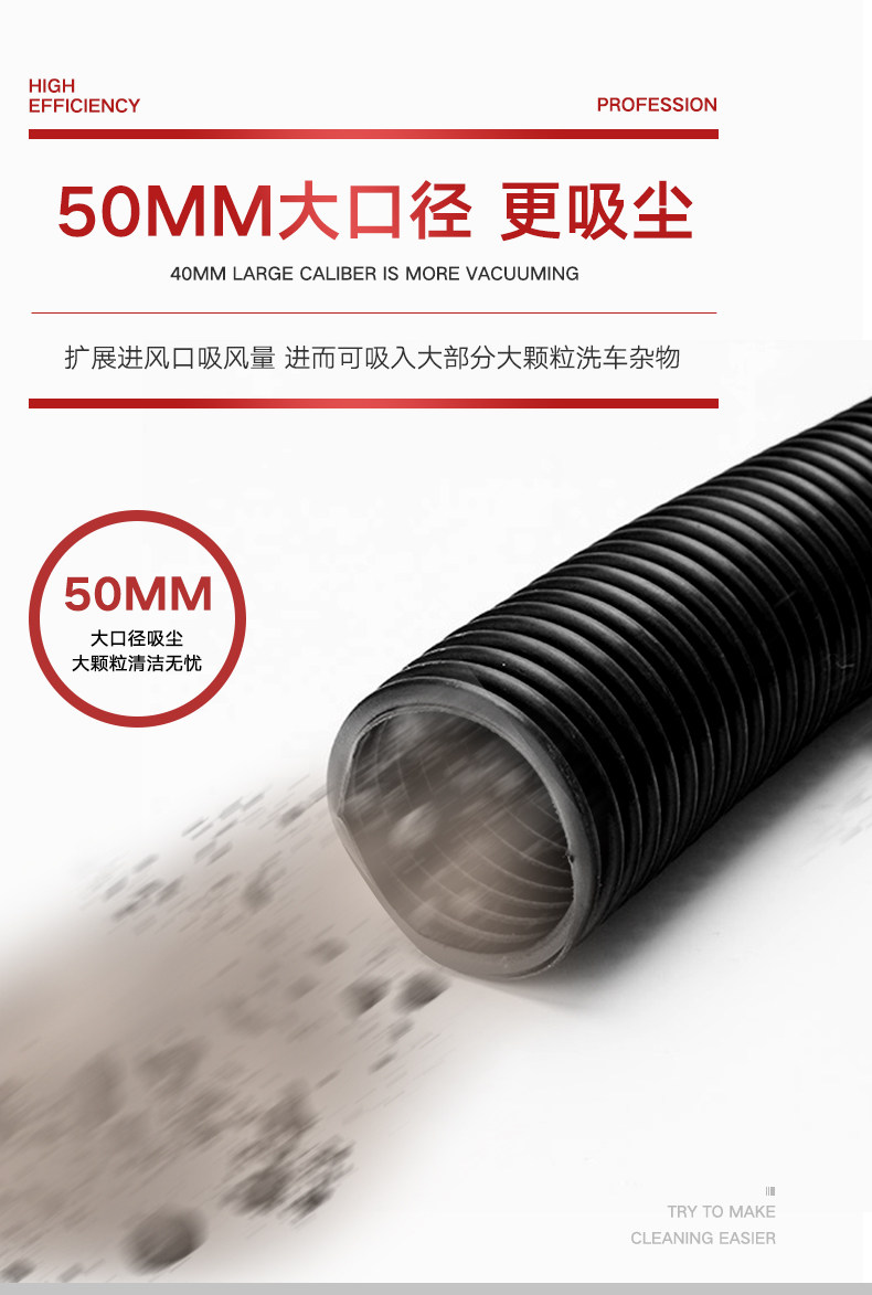 采用工业级涡轮电机,吸力强劲,散热好,可以长时间连续工作,坚固耐用,寿命更长。电机经过消音处理,噪音小。