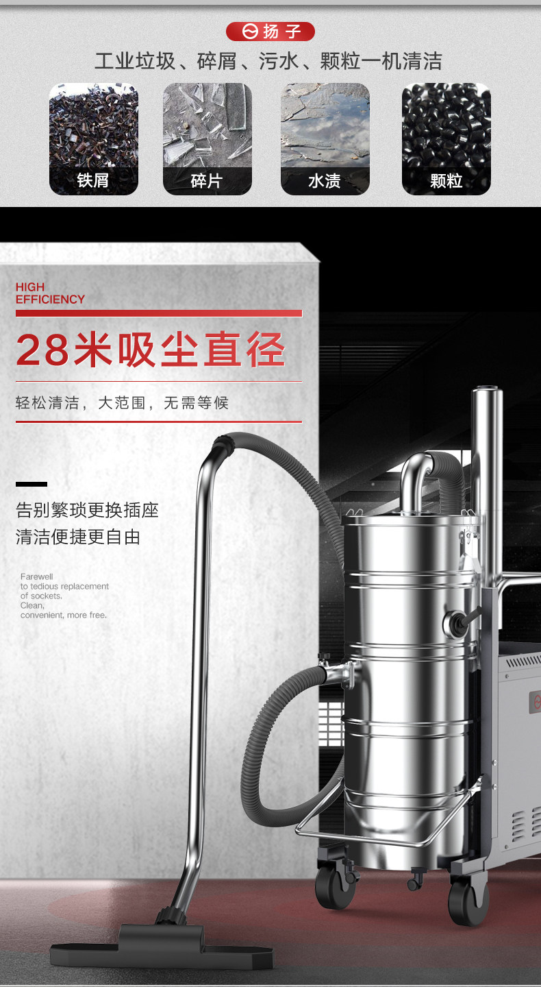 适用于工厂车间的地面粉尘、煤灰、水泥、碳素、陶瓷、面粉、铁屑、玻璃碎片等垃圾物料,都有很好的使用效果。