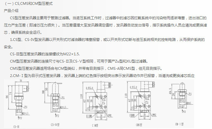 定制压差过滤器 堵塞发讯器 KF压力表开关液压配件