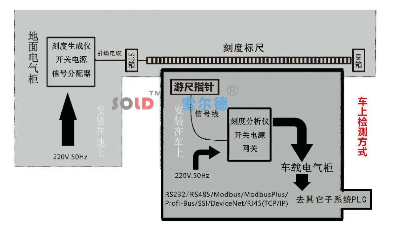 1) 车载子系统:由游尺指针、车载电气柜(内含刻度生成仪、开关电源等)。