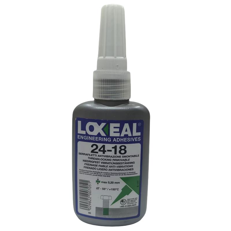 乐赛尔24-18胶水是一种低强度通用型螺纹锁固剂,- 基本信息:品牌为Loxeal,化学成分为厌氧甲基酸酯,颜色为紫色,符合ISO、ROHS、REACH等标准。- 固化机制:在没有空气且存在金属离子的情况下固化。- 适用范围:适用于机器和设备中精密螺丝和紧固件的锁固与密封,尤其在测量仪器、数控机床、木工机械的装配以及一般装配中小螺丝的锁固方面非常有用,可用于尺寸达2英寸的紧固件,也广泛用于锁定定位螺丝。- 性能特点:填充间隙为0.20mm,操作固化时间为15-30分钟,功能固化时间为1-3小时,剪切强度为3-5N/mm2,分离扭矩为5-8Nm,持续扭矩为2-5Nm,使用温度范围为-55°C至+150°C。- 包装规格:50ml、250ml。