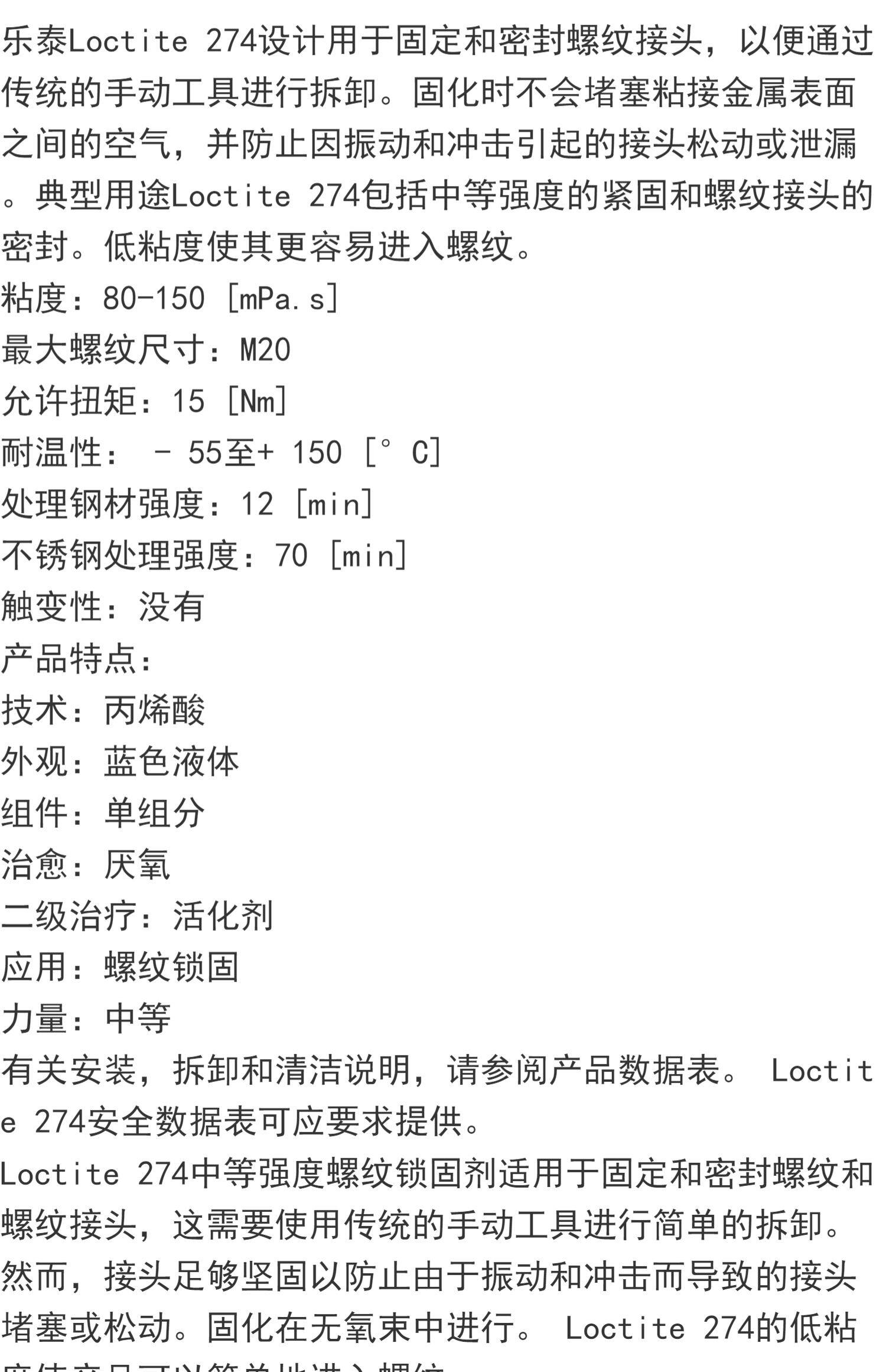 loctite274胶水 重庆乐泰胶水代理商 50ML价格