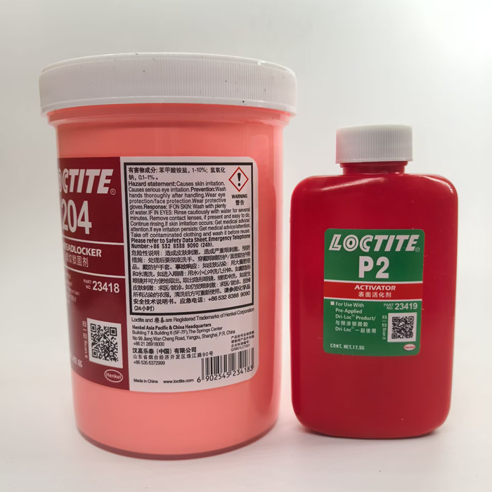 - 混合调配:需将乐泰204与配套的固化剂(如乐泰P2)混合,把固化剂倒入204中,用不锈钢或聚四板仔细完全调匀,不可用力过重,避免弄破固化剂的微,否则会自行固化或降低锁固力。