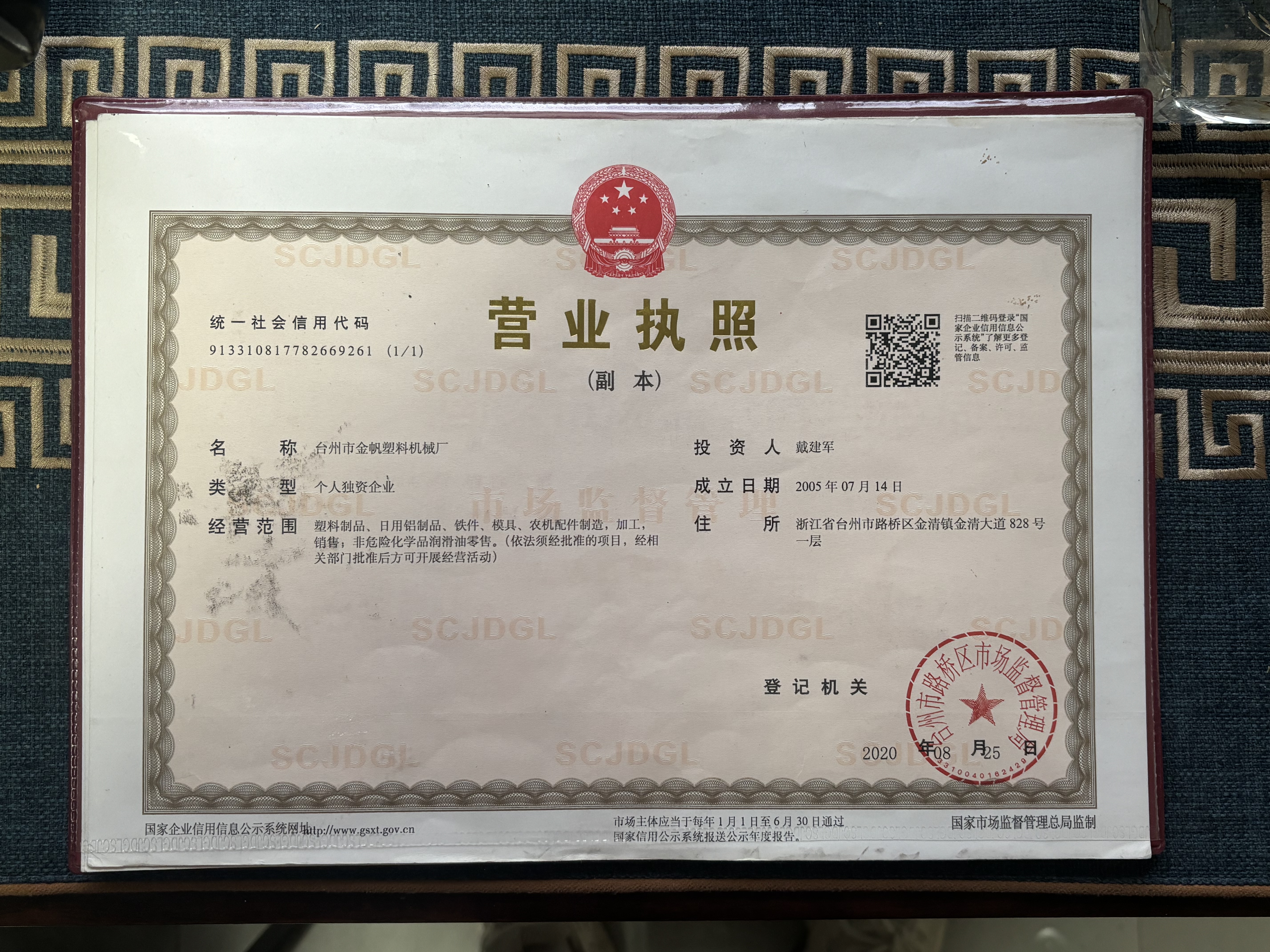 地址: 中国 浙江 台州市浙江省台州市路桥区金清镇金清大道828号一层