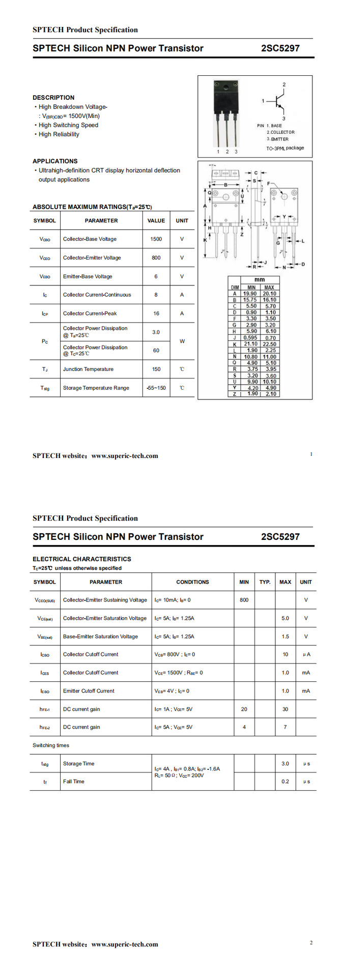 介 绍: 2SC5297采用韩国进口芯片.自主封装.