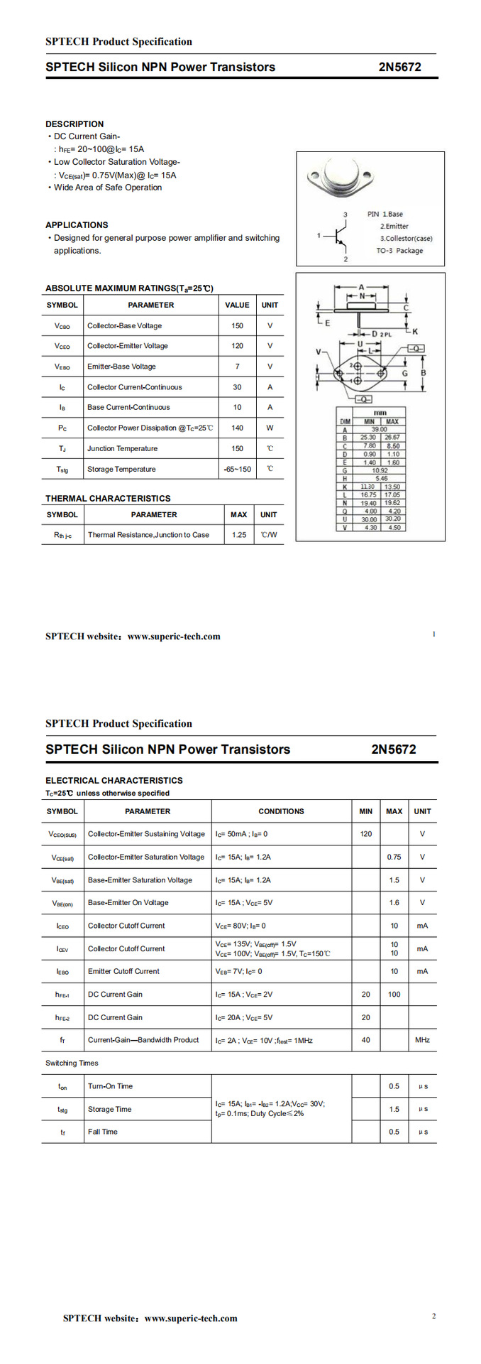 介 绍: 2N5672采用韩国进口芯片.自主封装.