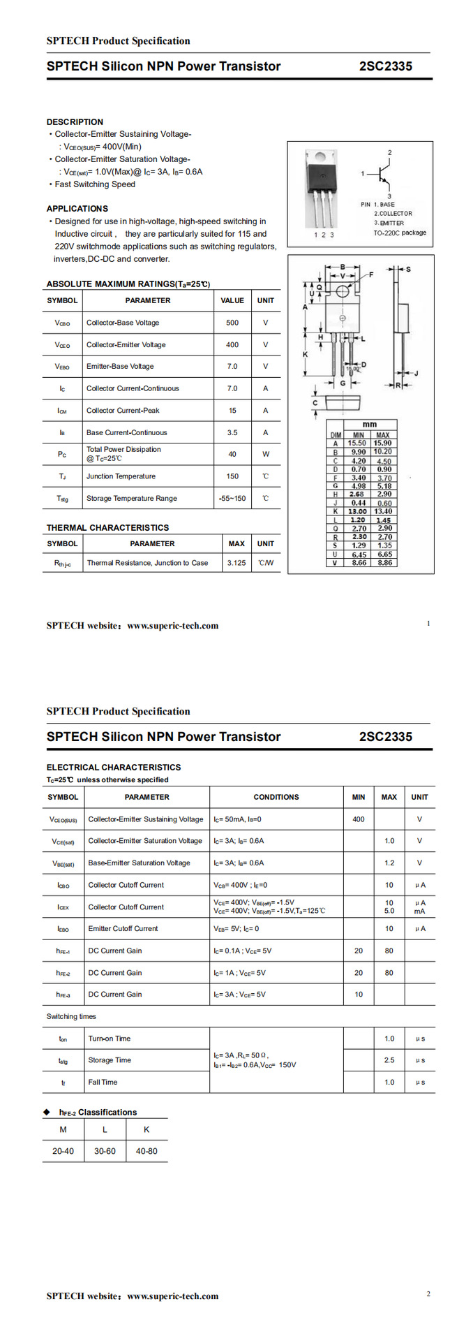 介 绍: 2SC2335采用韩国进口芯片.自主封装.