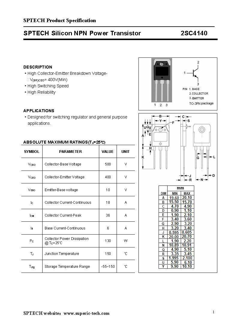 介 绍: 2SC4140采用韩国进口芯片.自主封装.