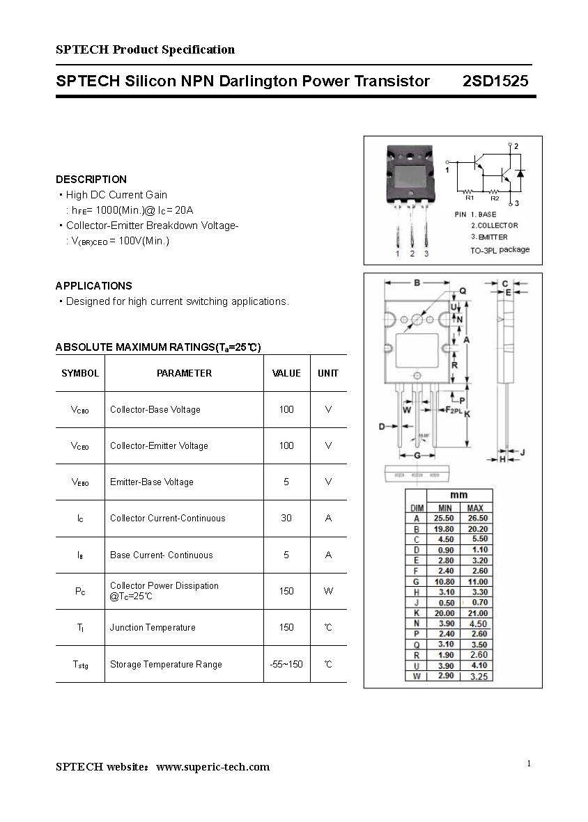 介 绍: 2SD1525采用韩国进口芯片.自主封装.