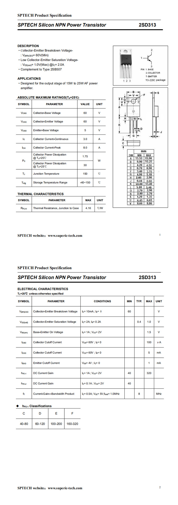 介 绍: 2SD313采用韩国进口芯片.自主封装.