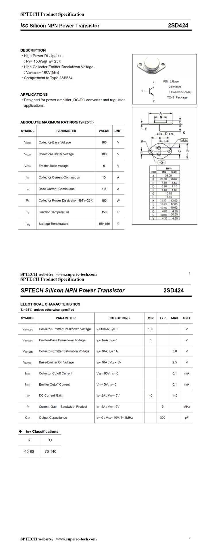 介 绍: 2SD424采用韩国进口芯片.自主封装.