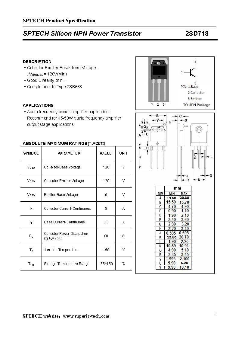 介 绍: 2SD718采用韩国进口芯片.自主封装.