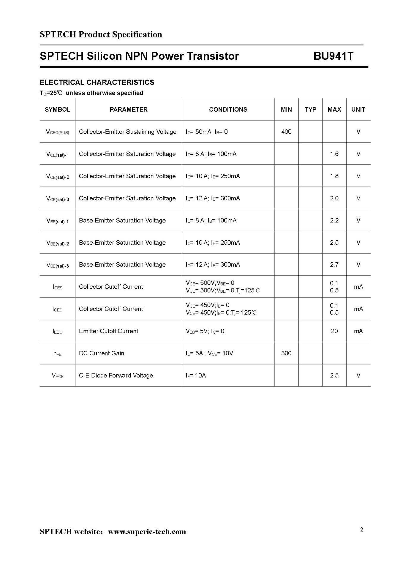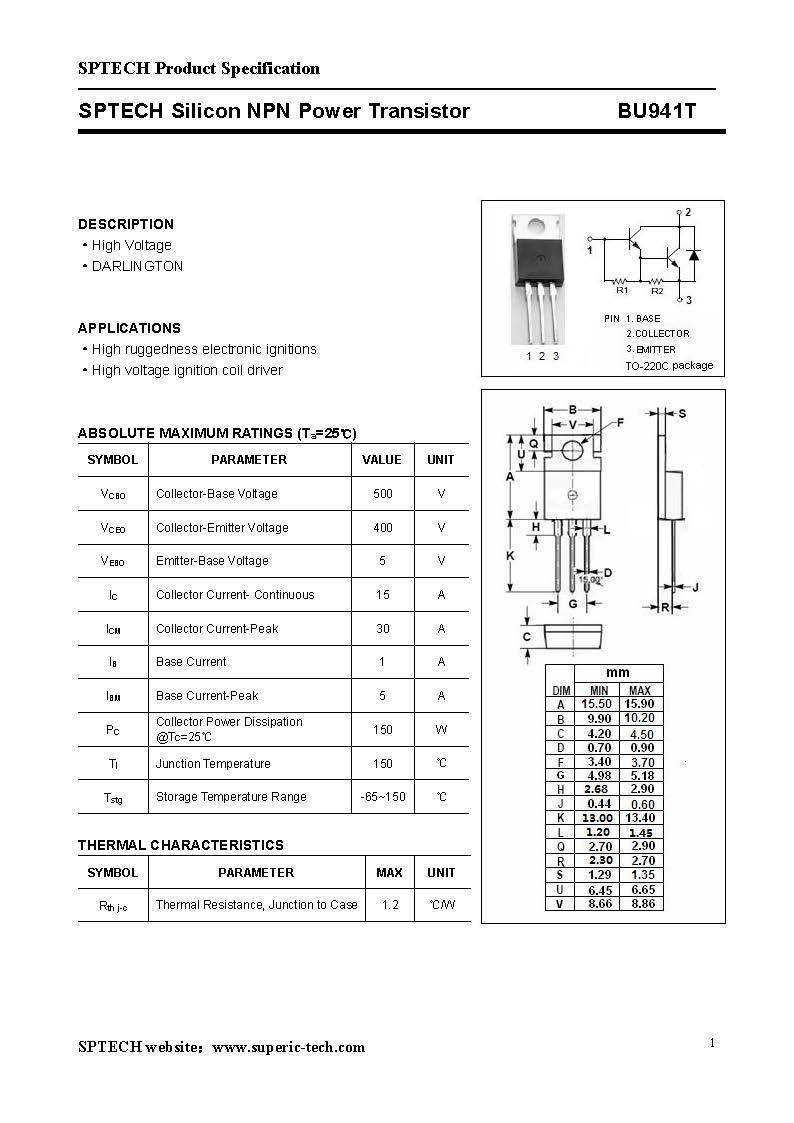 SPTECH晶体管 汽车电子专用BU941T晶体管 工厂NPN放大晶体管