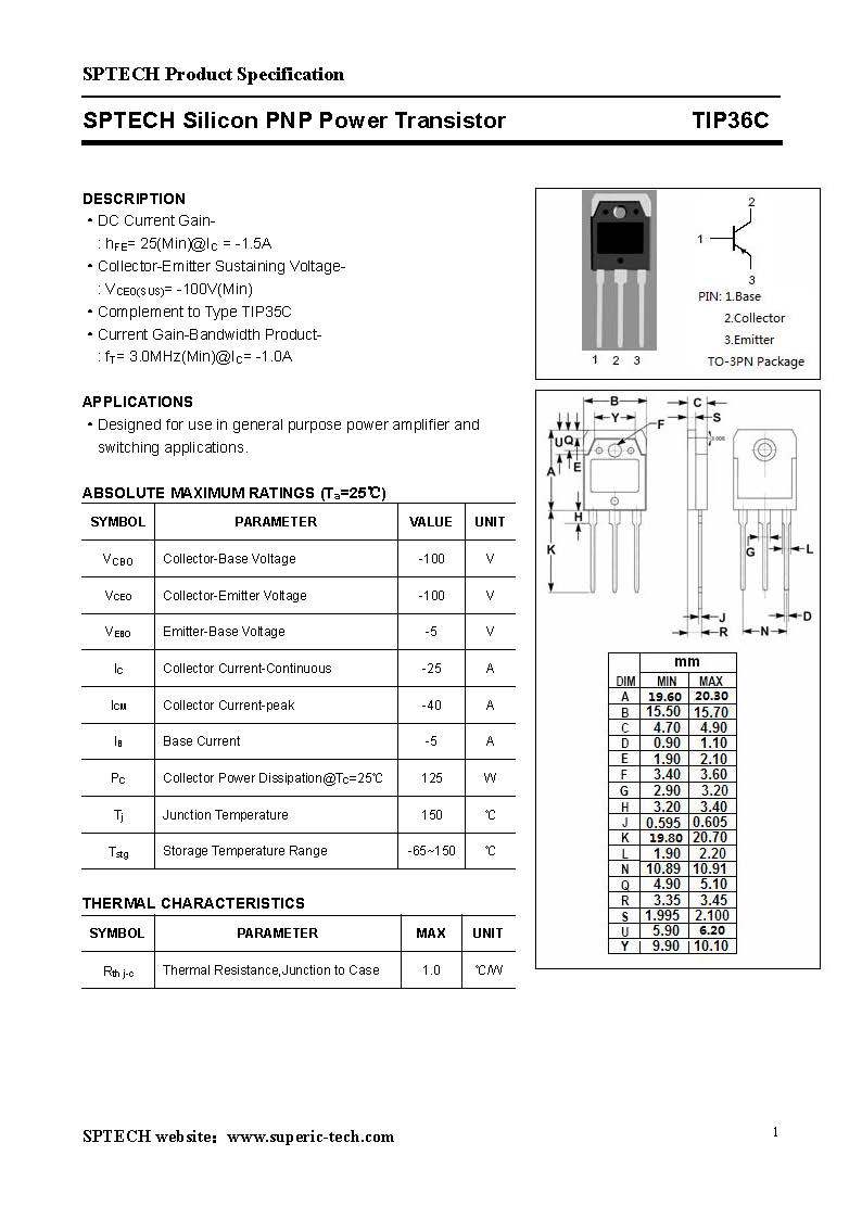 介 绍: TIP36C采用韩国进口芯片.自主封装.品质等同于美国仙童。