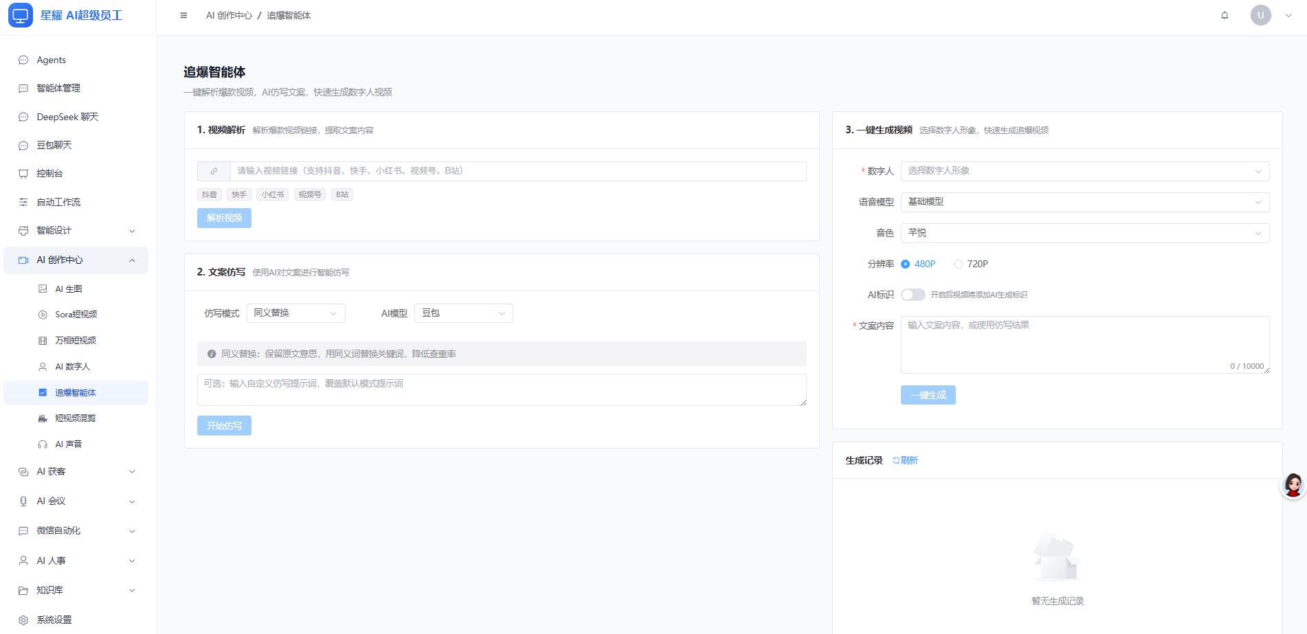 星耀AI超级员工之所以能打破传统办公的低效困境,核心在于其全场景、高智能、低成本的功能优势,全方位适配中小企业办公需求,真正实现“一人顶一队”的高效价值。在内容创作领域,它无需人工干预,可快速生成高质量文案、剪辑适配多平台的短视频,无论是产品宣传文案、活动推文,还是短视频脚本、字幕制作,都能匹配品牌调性,省去人工撰写、反复修改的时间成本,同时保证输出质量的稳定性,彻底解决文案质量参差不齐、创作效率低下的难题。