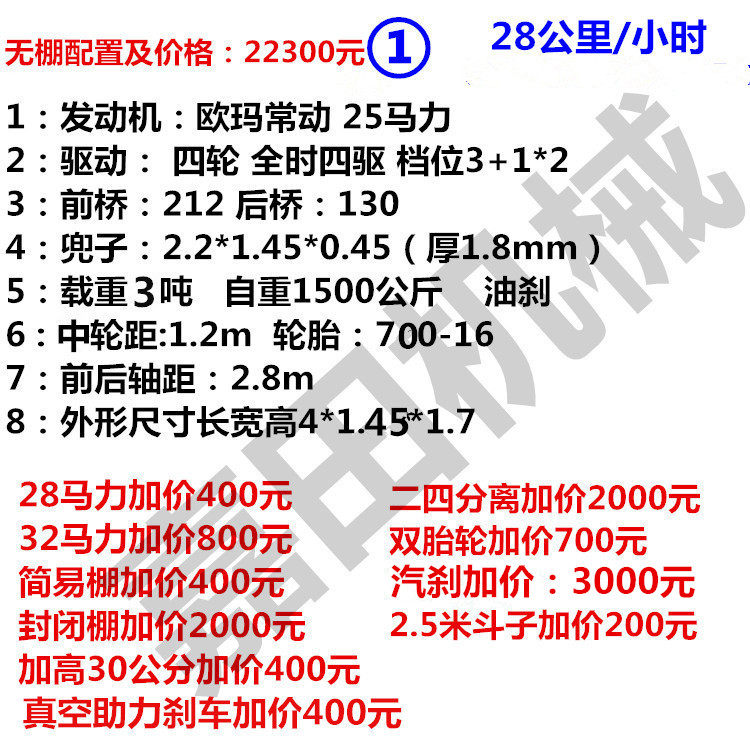 25马力载重3吨参数: