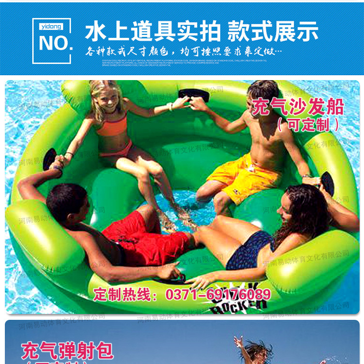 ④、玩具长期存放,应定期检查有无受潮,应在通风处吹起并擦拭干净。以上水上充气娱乐产品只为我厂部分款式、其他款式均可定制、我司欢迎客户来图定制!