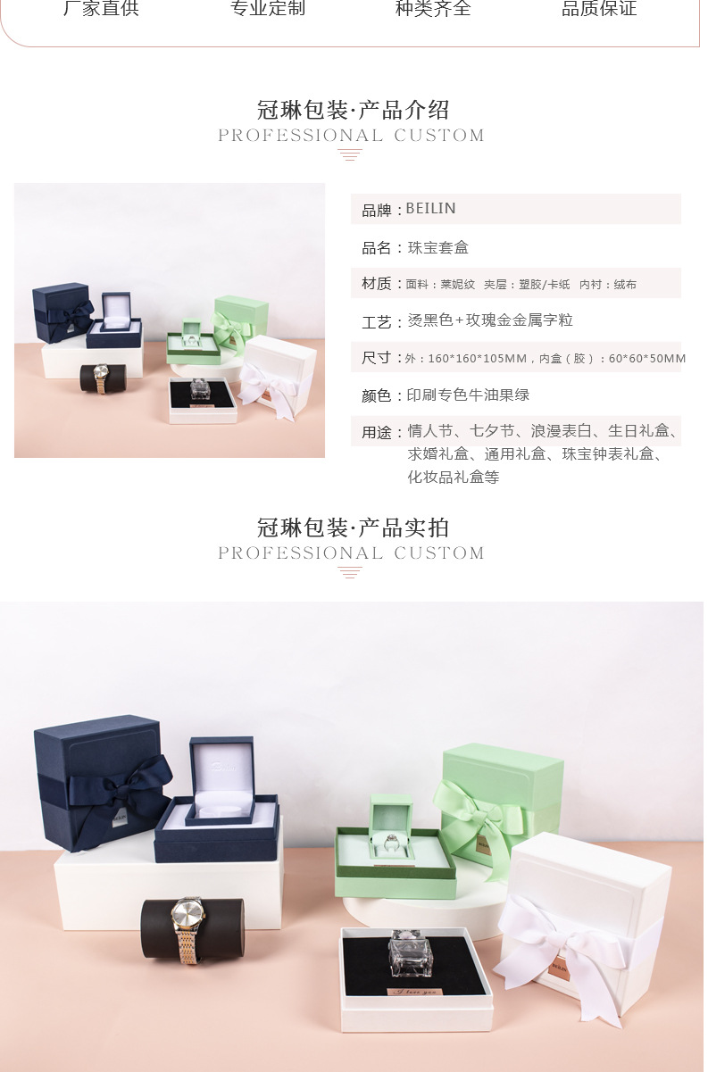 这款礼盒可以放置香水,也可以用来存放手表。这款礼盒有多个颜色,有白色、青草绿、咖啡色、深蓝色。更多款式,更多颜色,更多造型,更多你想要的礼品盒,冠琳包装盒为您定制。