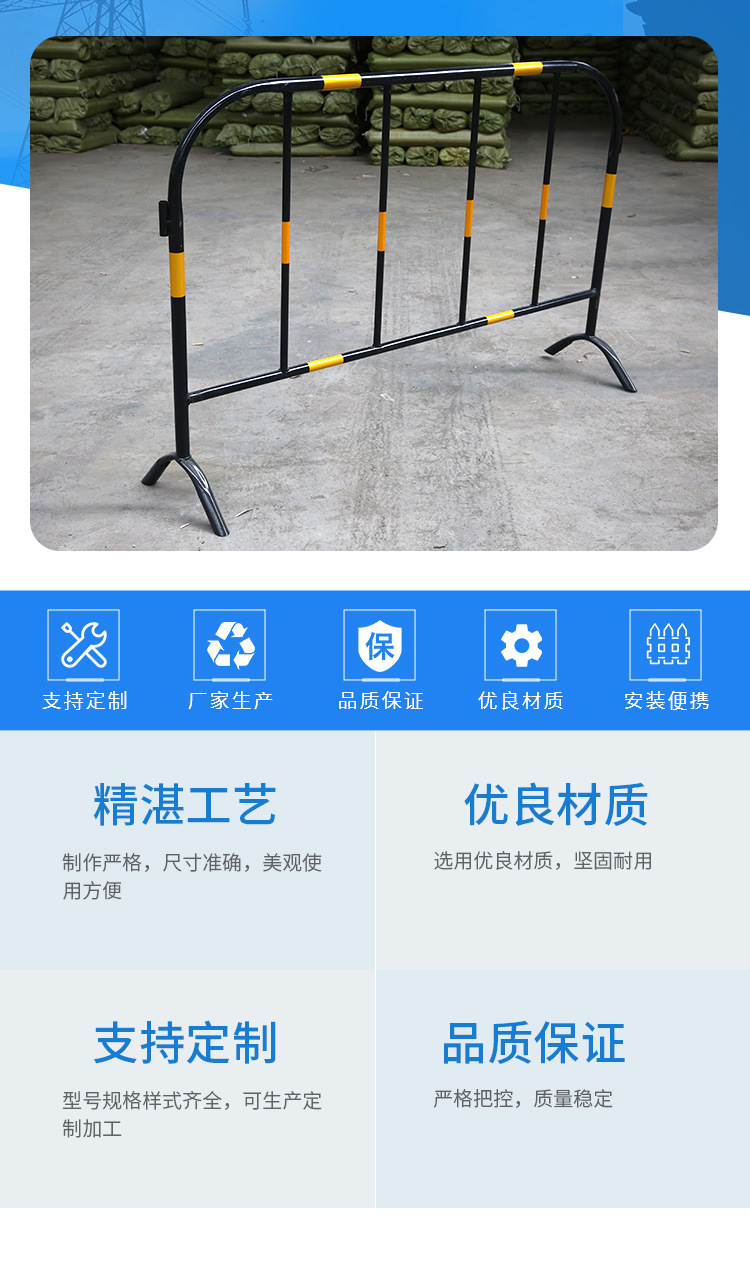 临时护栏,又可以称为移动围栏,临时隔离栏,移动式安全围栏网。临时护栏网是适用临时隔离,临时隔断,临时圈围,是灵活性极强的产品。
