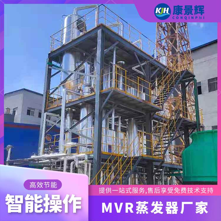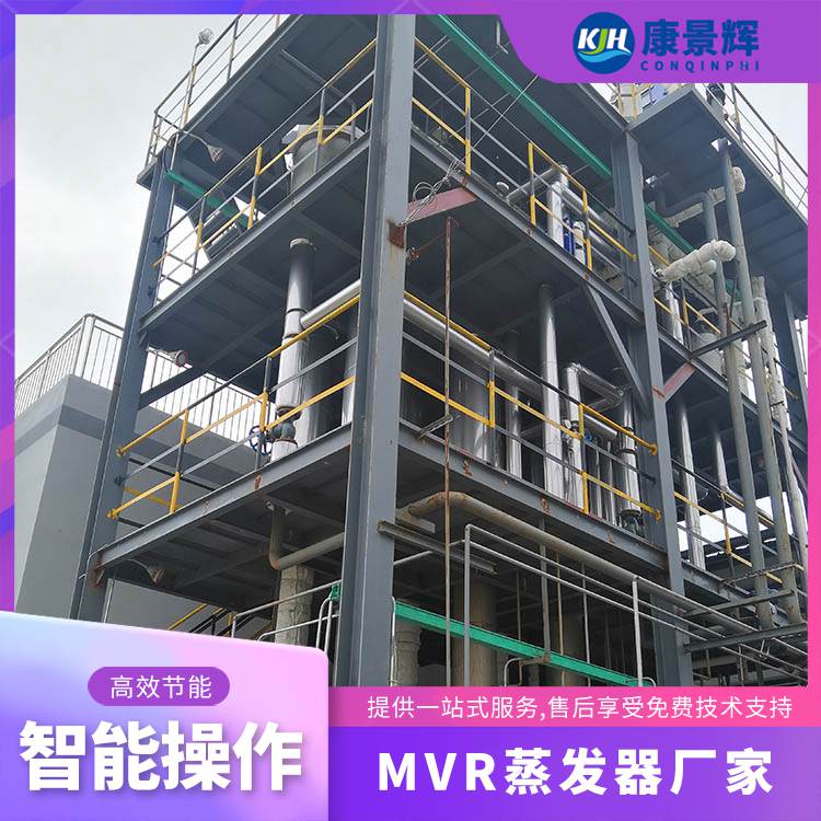 3、占地面积小,自动化程度高,传统多效蒸发器由于需要多个蒸发效体和配套的蒸汽、冷凝水管道,设备体积庞大,占地面积通常是MVR废水蒸发器的2-3倍。MVR废水蒸发器采用一体化设计,将蒸发室、压缩机、冷凝器、控制系统等集成于一套设备中,结构紧凑,对厂房空间的要求较低,尤其适合场地资源紧张的企业。MVR系统配备了智能控制系统可实现进料量、蒸发温度、压缩机转速、液位等参数的实时监测与调节,能避免因人为操作失误导致的设备故障或处理效果波动,提高了设备运行的安全性和稳定性。